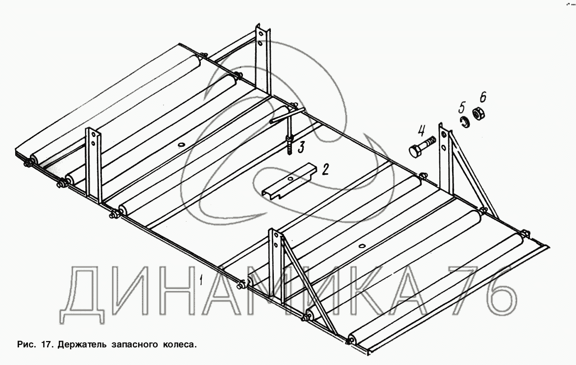 Перечень комплектующих от Держатель запасного колеса на МАЗ-9758