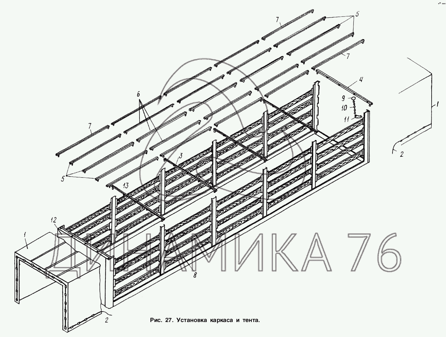 Перечень комплектующих от Установка каркаса и тента на МАЗ-9758