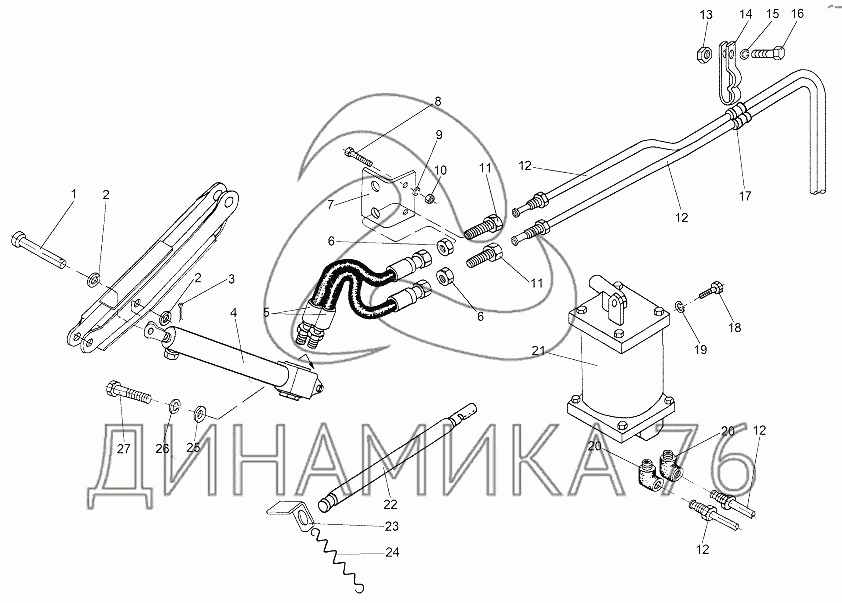 Перечень комплектующих от Механизм подъёма кабины на МЗКТ-65151 "Волат"
