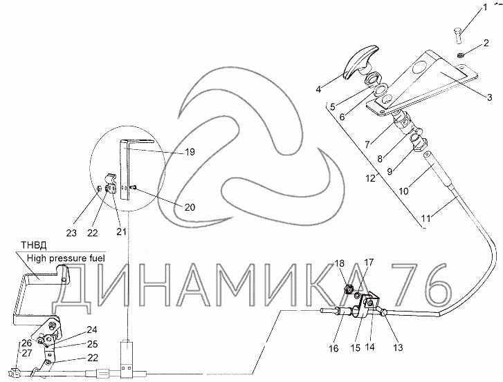 Привод останова двигателя на МЗКТ-65151 "Волат" (до 2010 г.)