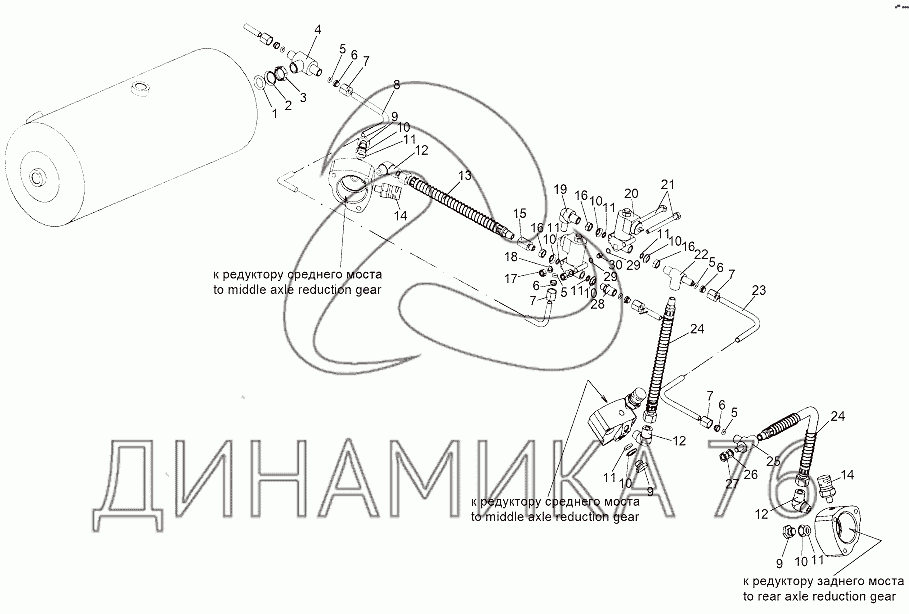 Перечень комплектующих от Привод управления блокировкой дифференциалов на МЗКТ-65151 "Волат"