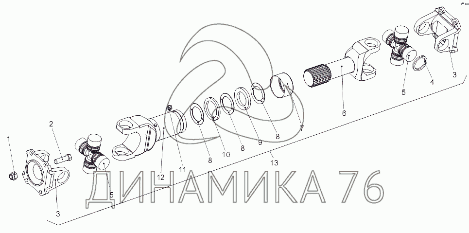 Перечень комплектующих от Установка карданного вала на МЗКТ-65151 "Волат"