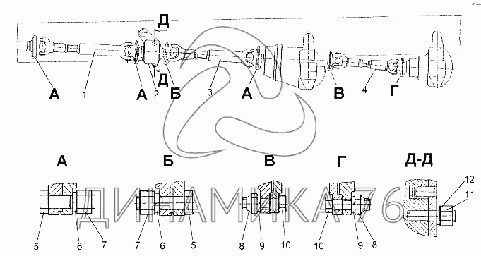 Схемы запчастей предназначены для справочных целей! Мы продаем не все запчасти от Установка карданных валов на МЗКТ-65151 "Волат", представленные в этом списке.
