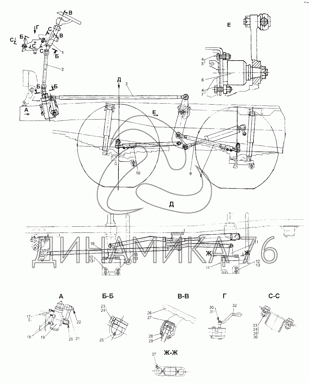 Схемы запчастей предназначены для справочных целей! Мы продаем не все запчасти от Установка рулевого управления на МЗКТ-65151 "Волат", представленные в этом списке.