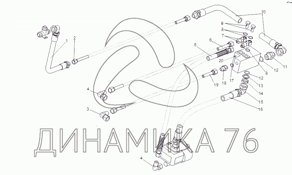 Перечень комплектующих от Установка трубопроводов блока клапанов на МЗКТ-65151 "Волат"