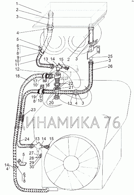 Перечень комплектующих от Установка трубопроводов отопителя на МЗКТ-65151 "Волат"