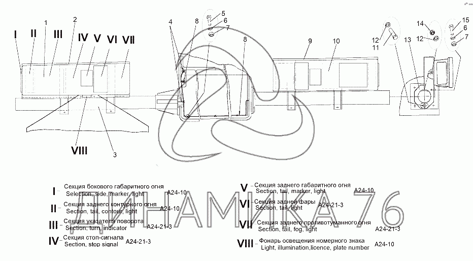 Схемы запчастей предназначены для справочных целей! Мы продаем не все запчасти от Установка задних фонарей на МЗКТ-65151 "Волат", представленные в этом списке.