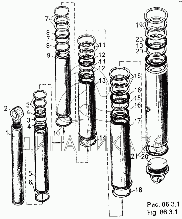 Схемы запчастей предназначены для справочных целей! Мы продаем не все запчасти от Гидроцилиндр 6515-8603010-02 на МЗКТ-65158, представленные в этом списке.