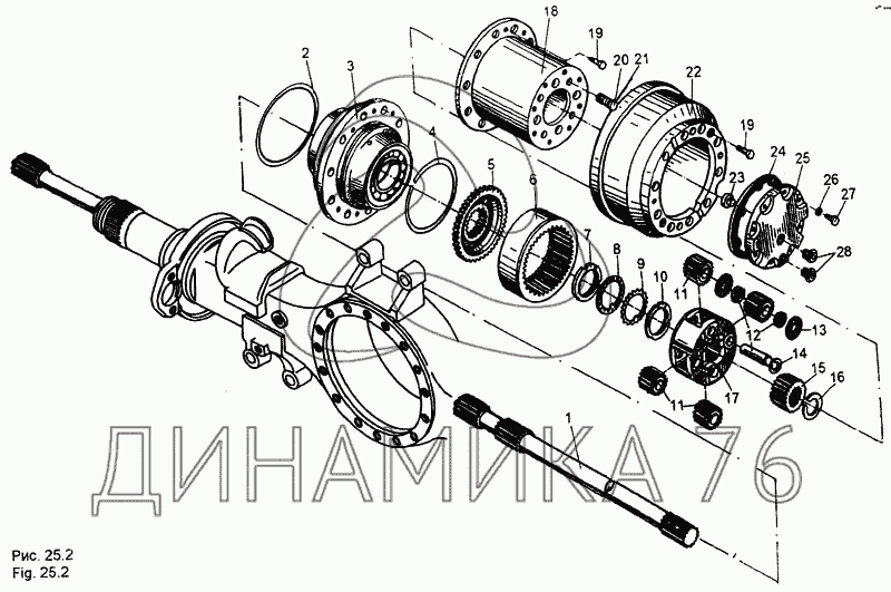 Мост средний. Детали колесной передачи на МЗКТ-65158 (до 1999 г.)
