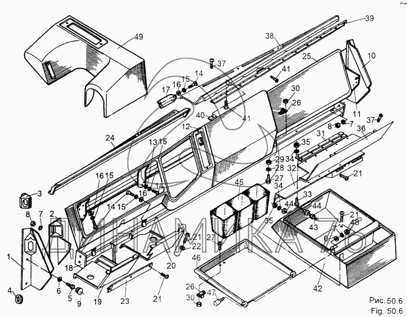 Схемы запчастей предназначены для справочных целей! Мы продаем не все запчасти от Панель приборов на МЗКТ-65158, представленные в этом списке.