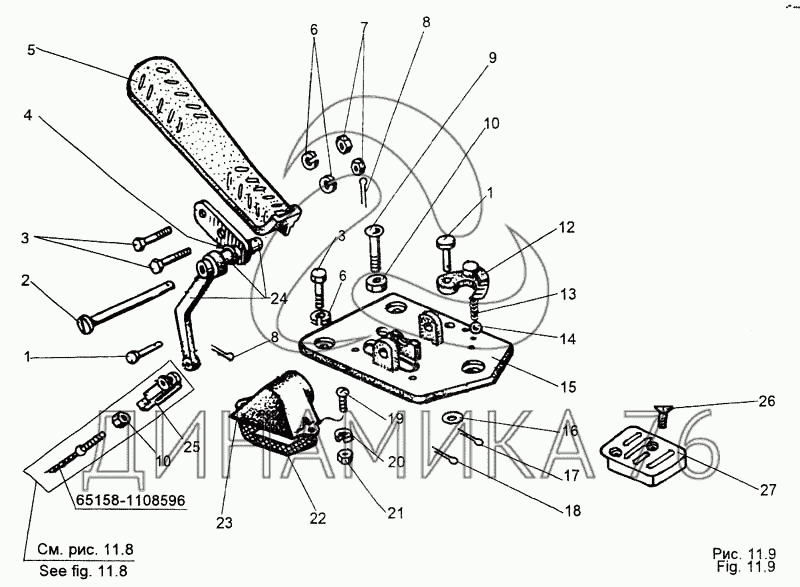 Перечень комплектующих от Педаль с кронштейном на МЗКТ-65158