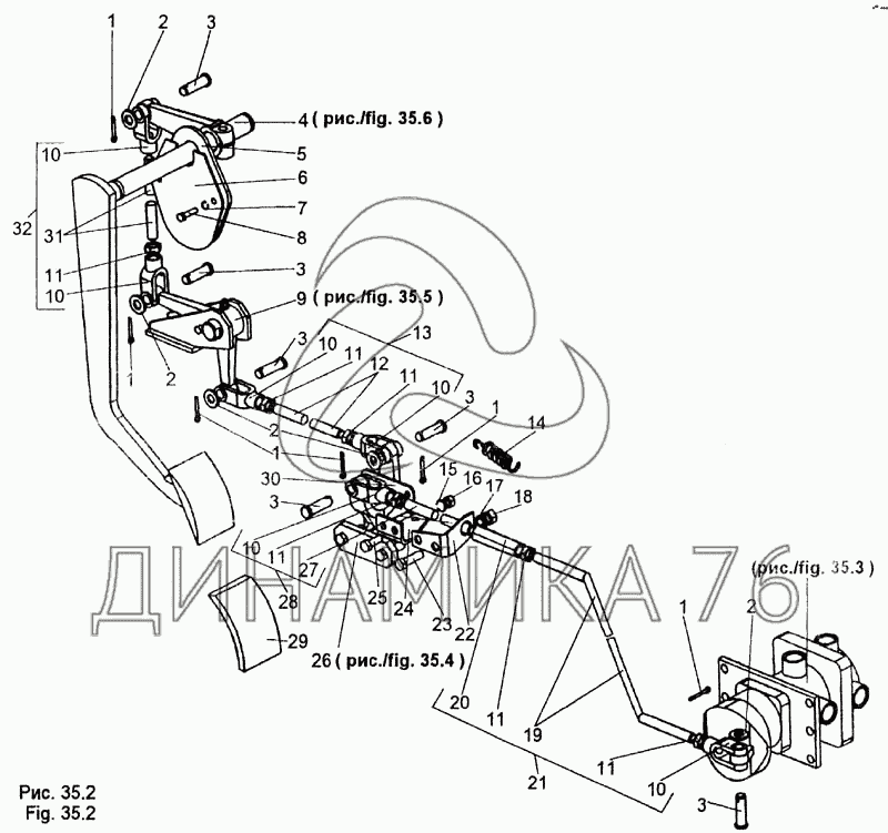 Привод тормозного крана — МЗКТ-65158: