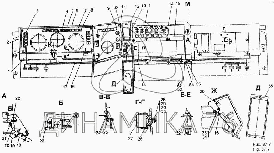 Схемы запчастей предназначены для справочных целей! Мы продаем не все запчасти от Установка электрооборудования в кабине на МЗКТ-65158, представленные в этом списке.