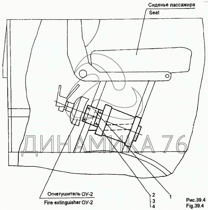 Установка огнетушителей на МЗКТ-65158 (до 1999 г.)