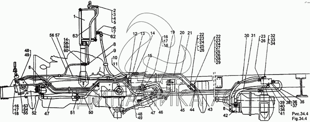 Перечень комплектующих от Установка шлангов и трубопроводов на МЗКТ-65158