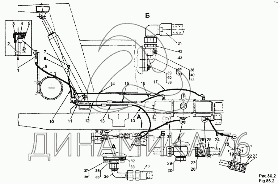 Перечень комплектующих от Установка трубопроводов системы подъёма на МЗКТ-65158