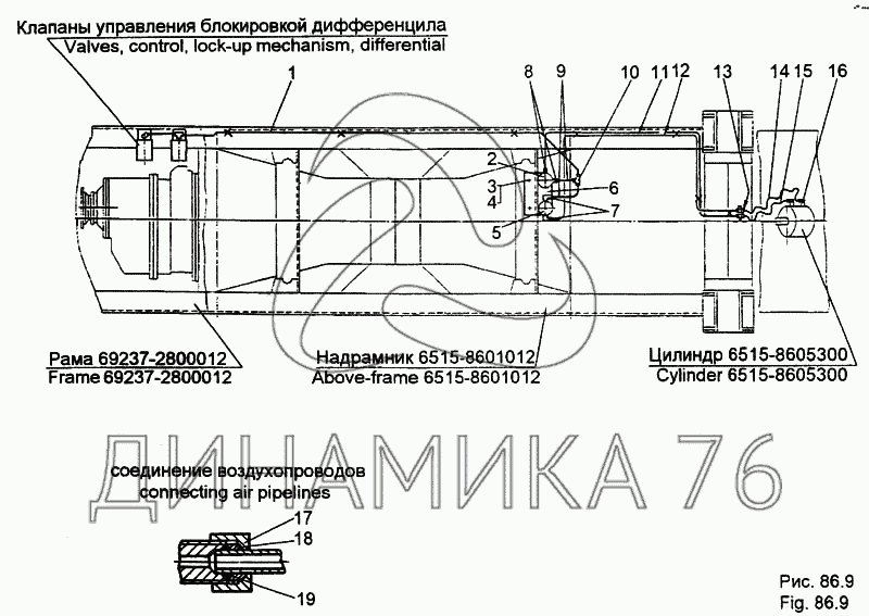 Перечень комплектующих от Установка трубопроводов системы управления на МЗКТ-65158