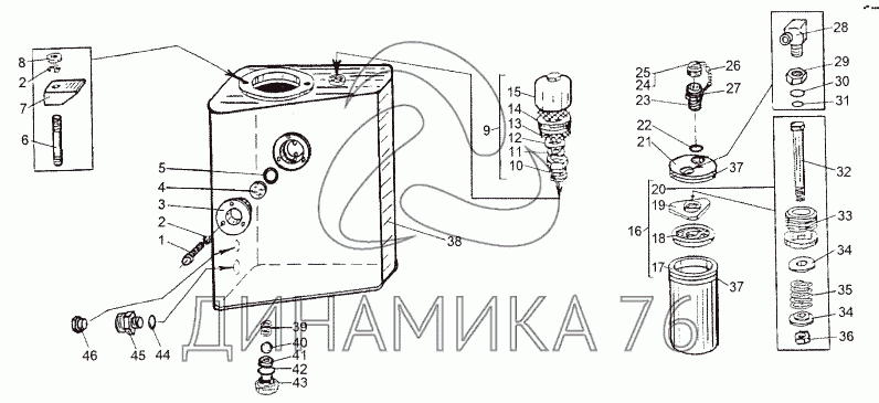 Перечень комплектующих от Бак масляный 652511-3410010 на МЗКТ-652511