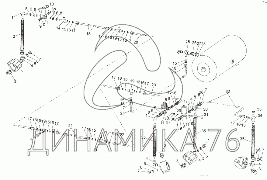 Перечень комплектующих от Привод управления блокировкой дифференциалов на МЗКТ-652511