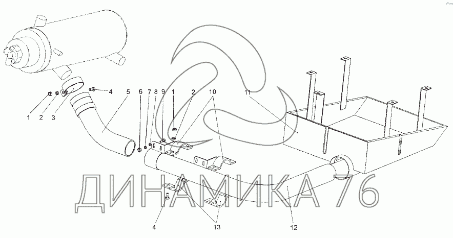 Перечень комплектующих от Система выхлопа подогревателя (ПЖД) на МЗКТ-652511