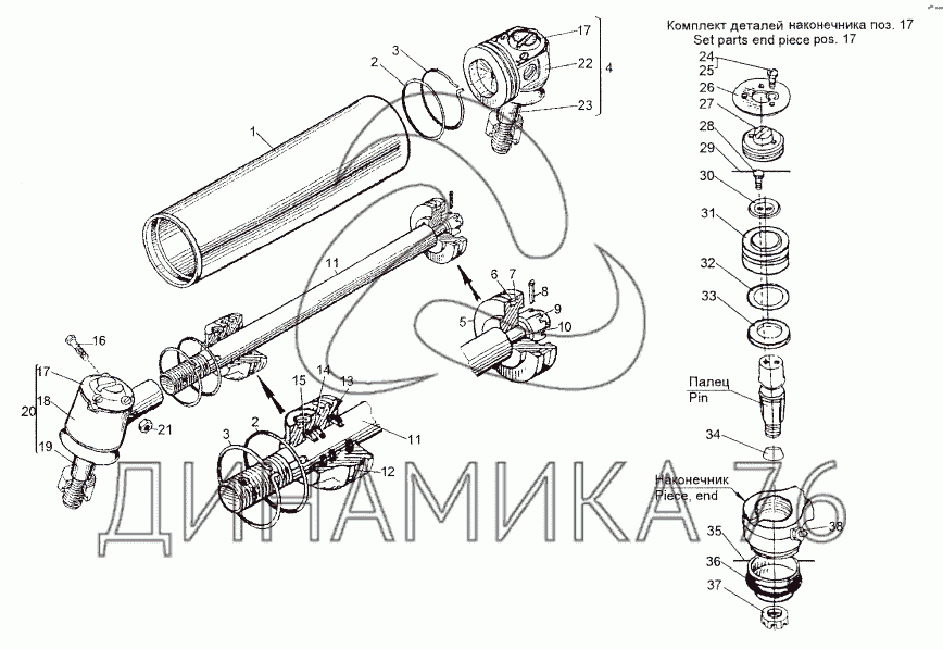 Перечень комплектующих от Цилиндр 8021-3405005-10 на МЗКТ-652511