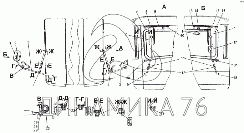 Схемы запчастей предназначены для справочных целей! Мы продаем не все запчасти от Установка держателей зеркал и зеркал на МЗКТ-652511, представленные в этом списке.