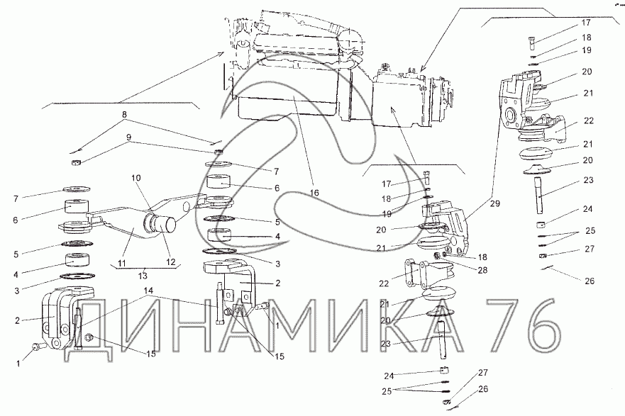 Схемы запчастей предназначены для справочных целей! Мы продаем не все запчасти от Установка двигателя на МЗКТ-652511, представленные в этом списке.