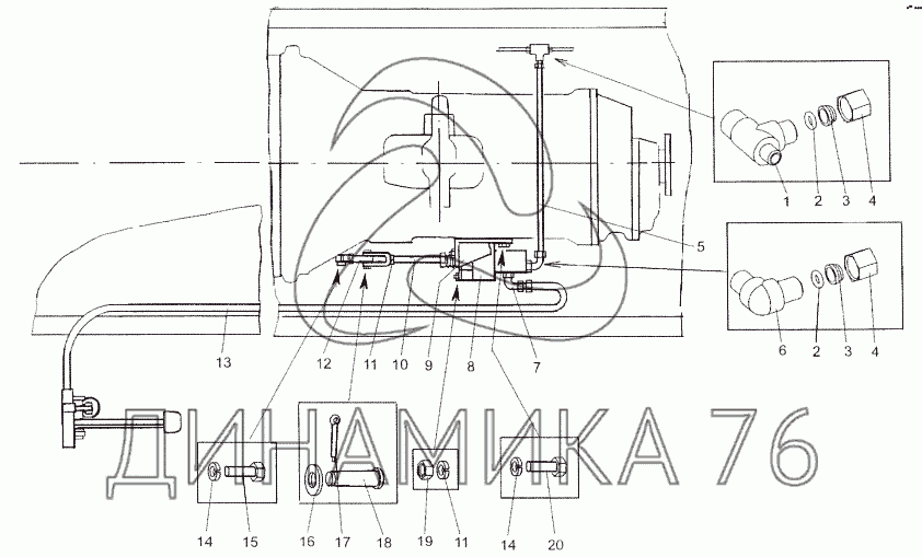 Перечень комплектующих от Установка привода управления сцеплением на МЗКТ-652511