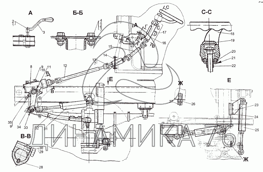 Схемы запчастей предназначены для справочных целей! Мы продаем не все запчасти от Установка рулевого управления на МЗКТ-652511, представленные в этом списке.