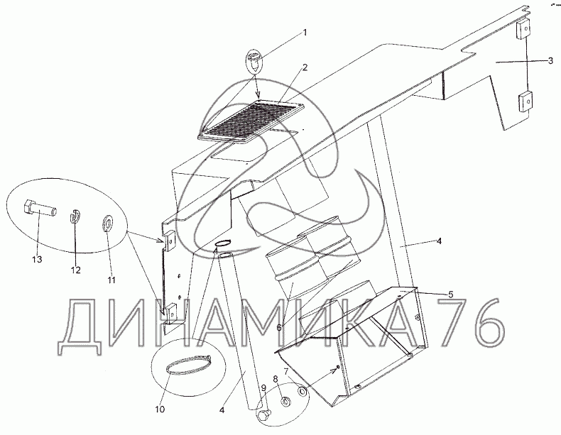 Перечень комплектующих от Установка воздухозаборника отопителя на МЗКТ-652511