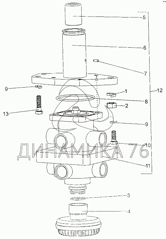 Перечень комплектующих от Привод тормозного крана на МЗКТ-700600-011