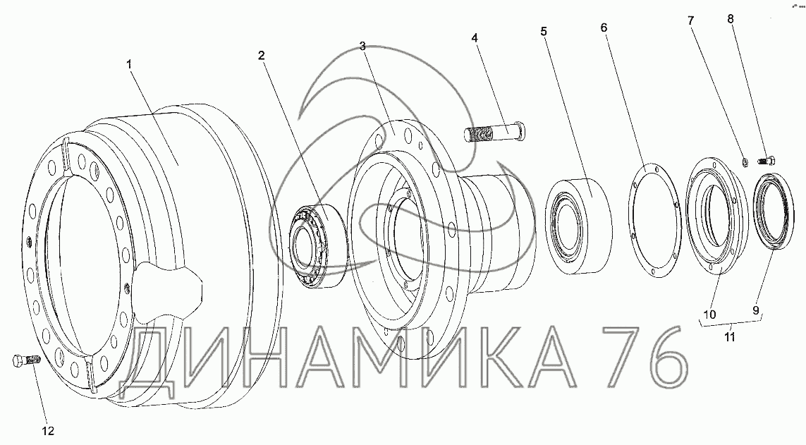 Перечень комплектующих от Ступица 692301-3103006 на МЗКТ-700600-011