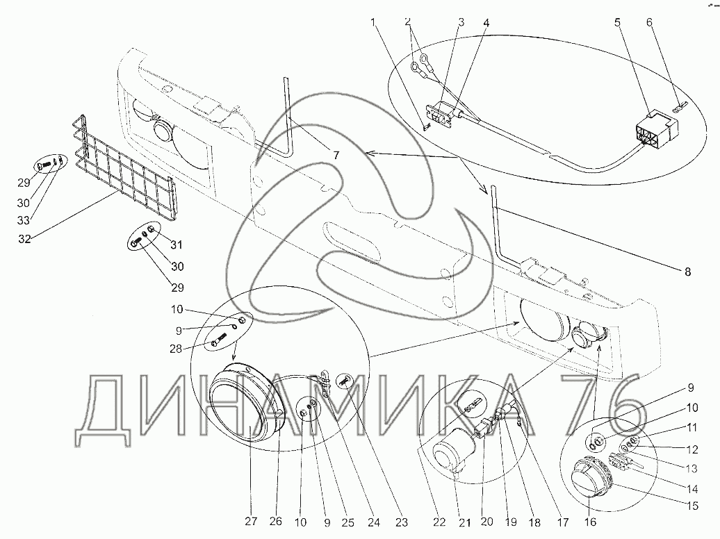 Перечень комплектующих от Установка головного освещения на МЗКТ-700600-011