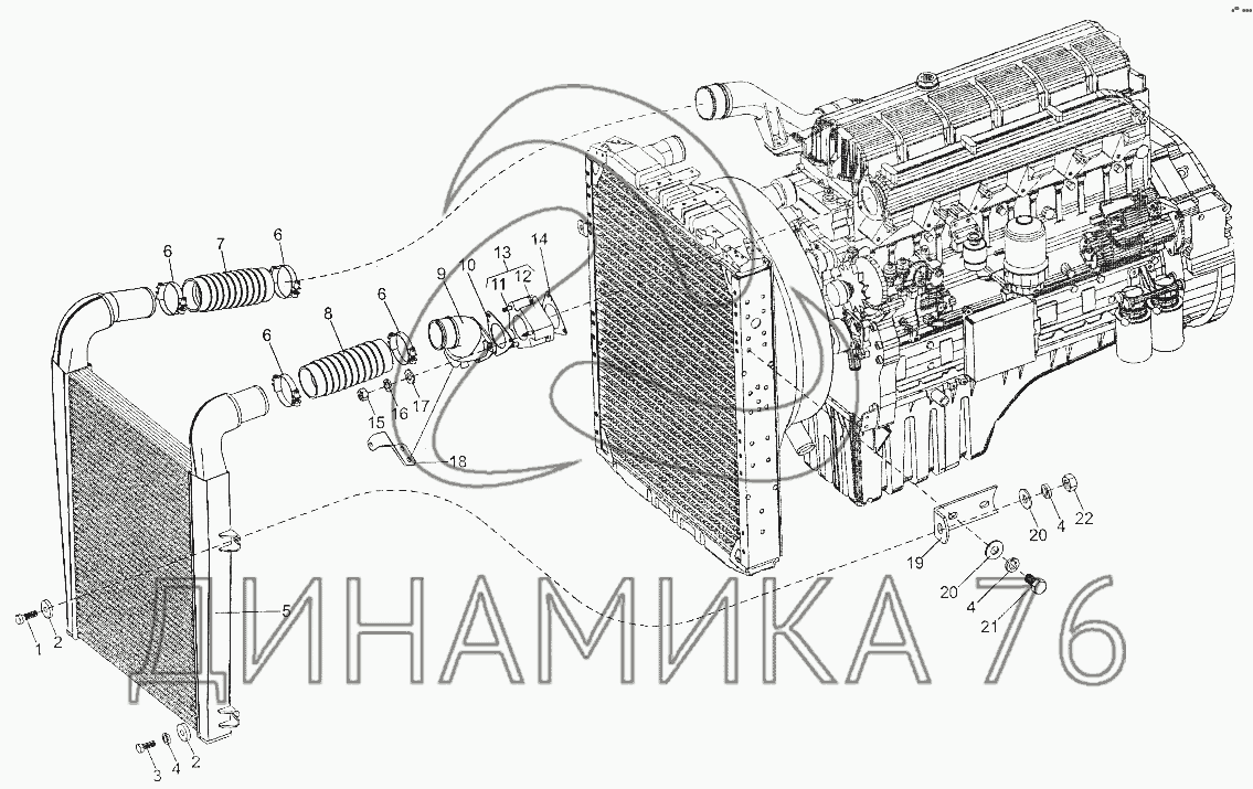 Схемы запчастей предназначены для справочных целей! Мы продаем не все запчасти от Установка охладителя наддува на МЗКТ-700600-011, представленные в этом списке.