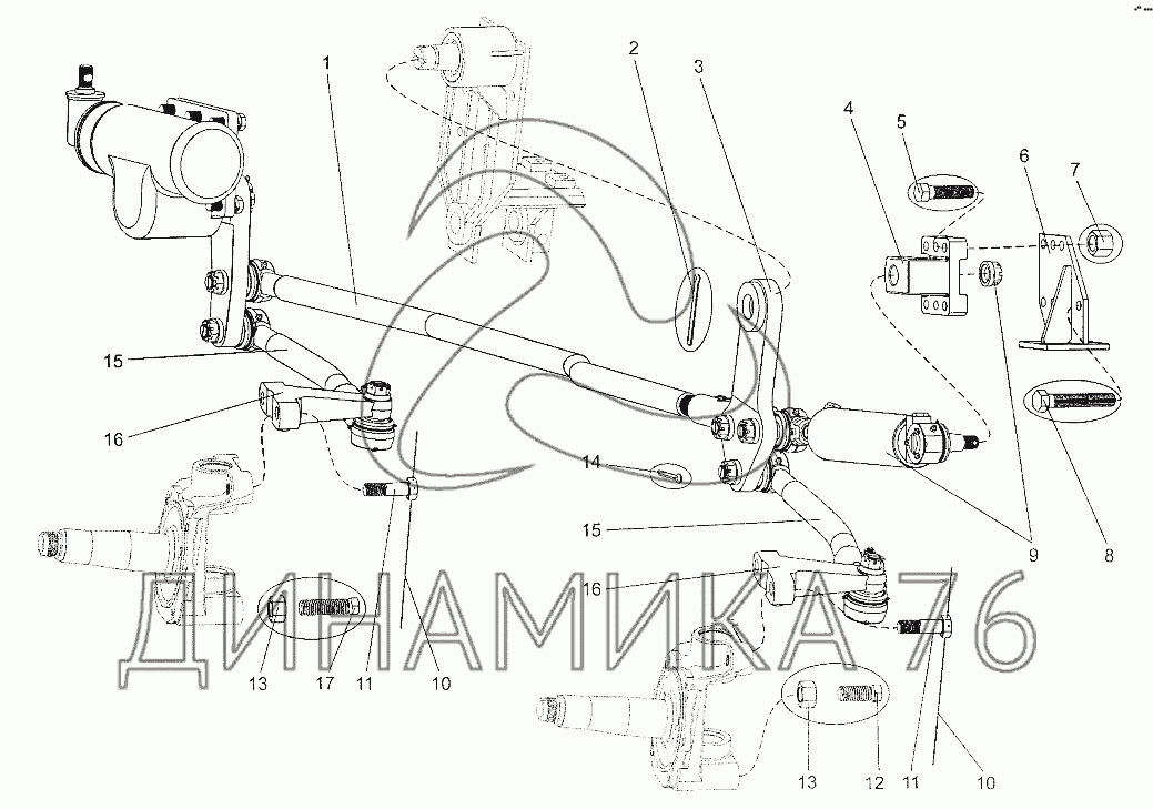 Перечень комплектующих от Установка рулевого управления на МЗКТ-700600-011