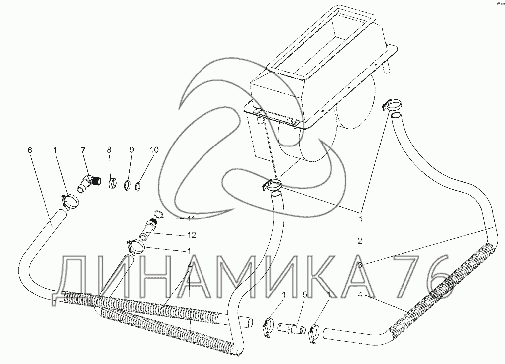 Перечень комплектующих от Установка трубопроводов отопителя кабины на МЗКТ-700600-011