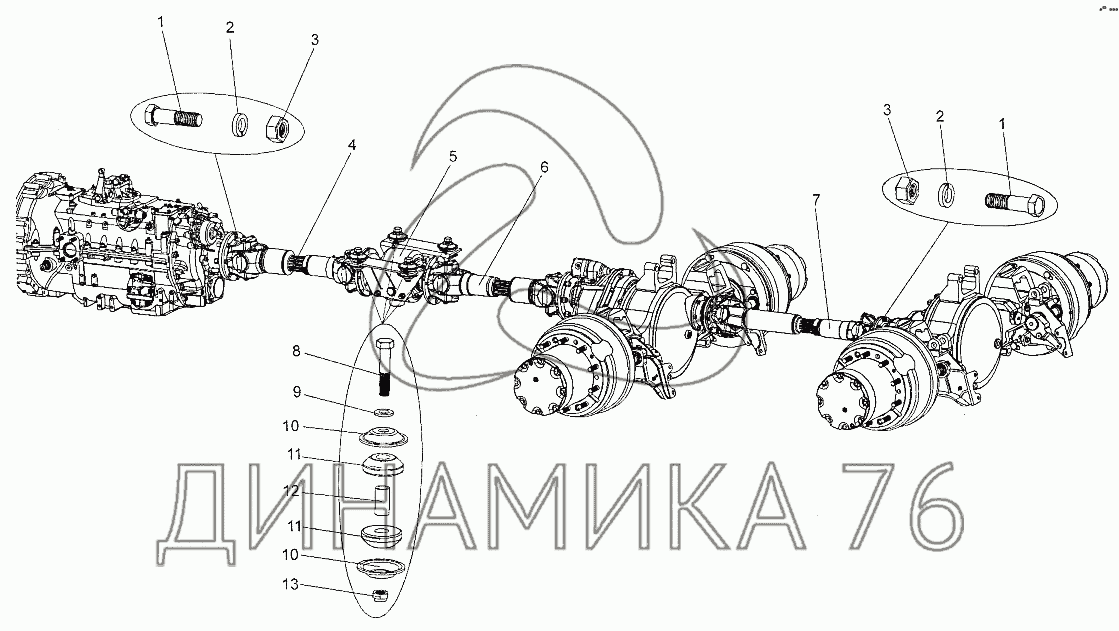 Перечень комплектующих от Установка валов карданных на МЗКТ-700600-011