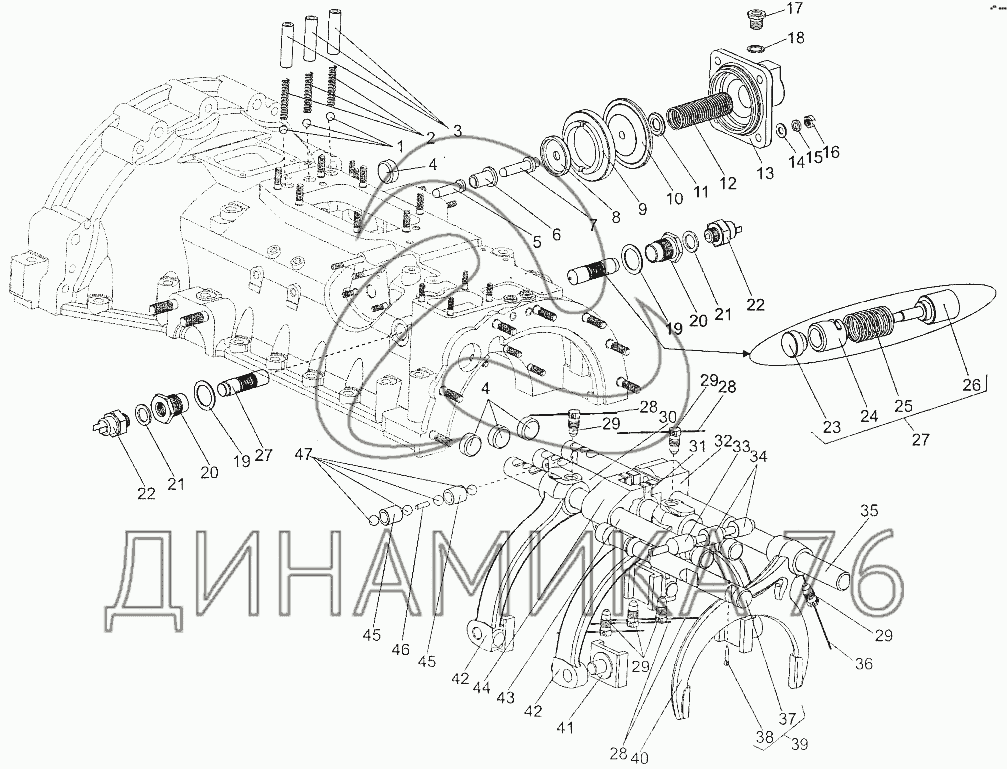 Перечень комплектующих от Установка вилок переключения передач на МЗКТ-700600-011