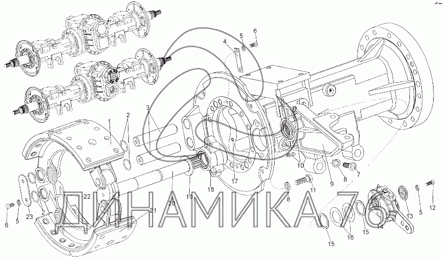 Перечень комплектующих от Привод тормозов задних мостов на МЗКТ-7401