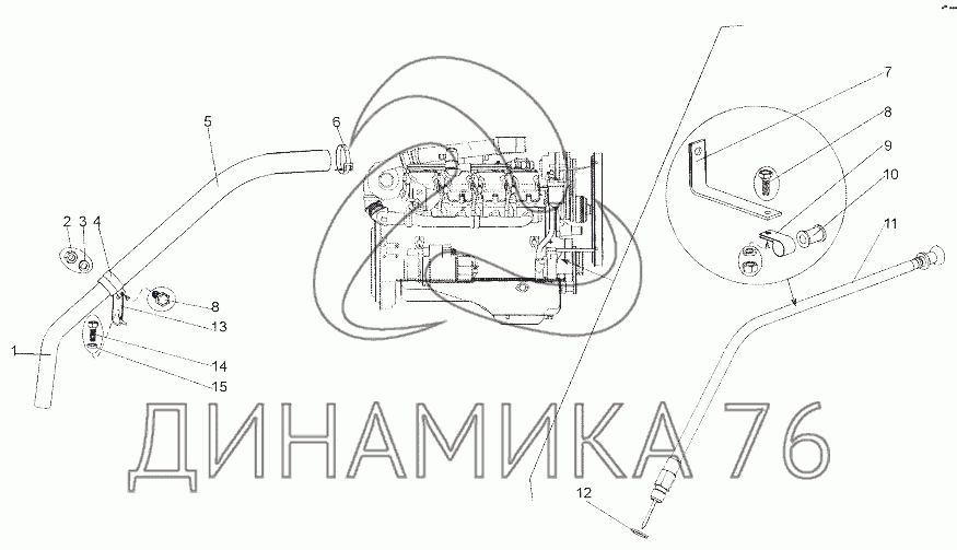 Перечень комплектующих от Установка агрегатов системы смазки двигателя на МЗКТ-7401