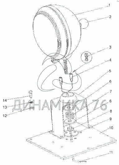Схемы запчастей предназначены для справочных целей! Мы продаем не все запчасти от Установка фары-прожектора на МЗКТ-7401, представленные в этом списке.