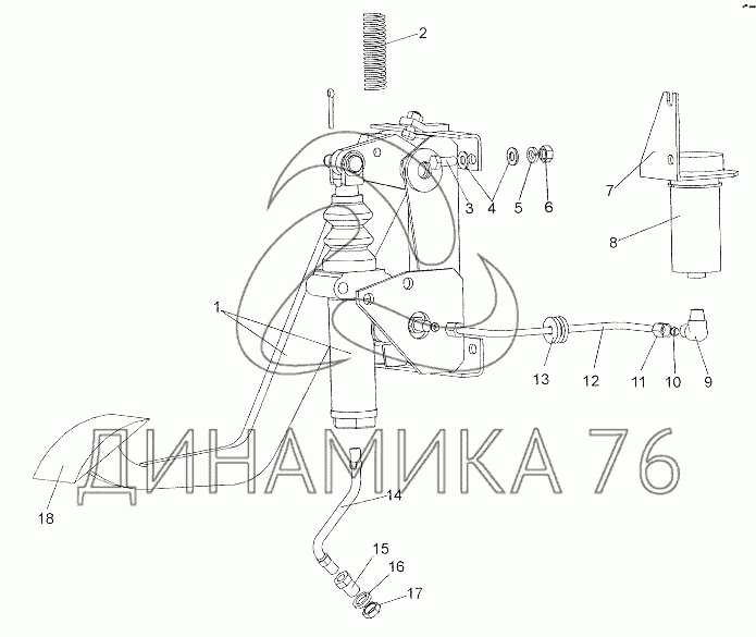 Перечень комплектующих от Установка механизма управления сцеплением на МЗКТ-7402