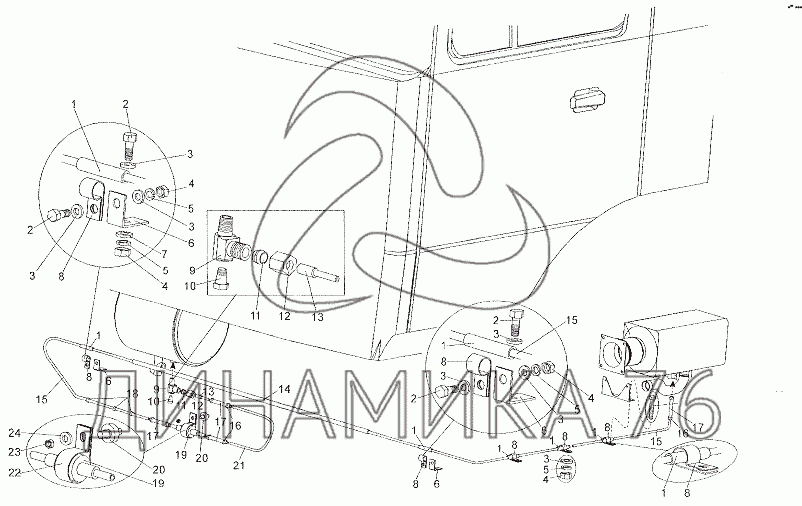 Перечень комплектующих от Установка топливопроводов независимого отопителя на МЗКТ-7402