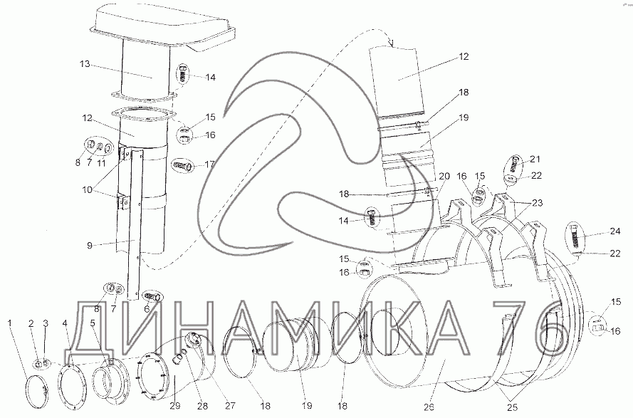 Схемы запчастей предназначены для справочных целей! Мы продаем не все запчасти от Установка воздухоочистителя на МЗКТ-7402, представленные в этом списке.