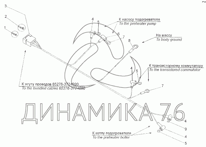 Перечень комплектующих от Жгут проводов подогревателя 7401-3724120 на МЗКТ-7402