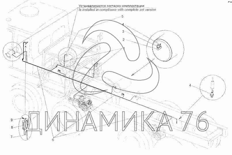 Жгуты проводов по правому лонжерону на МЗКТ-7402 (до 2010 г.)