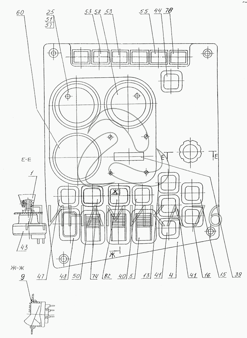Схемы запчастей предназначены для справочных целей! Мы продаем не все запчасти от Панель приборов освещения на МЗКТ-74131, представленные в этом списке.