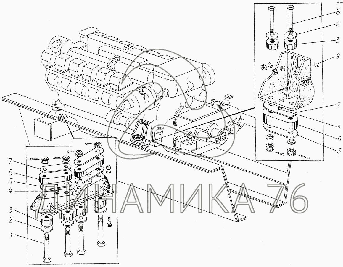 Перечень комплектующих от Подвеска двигателя на МЗКТ-74131