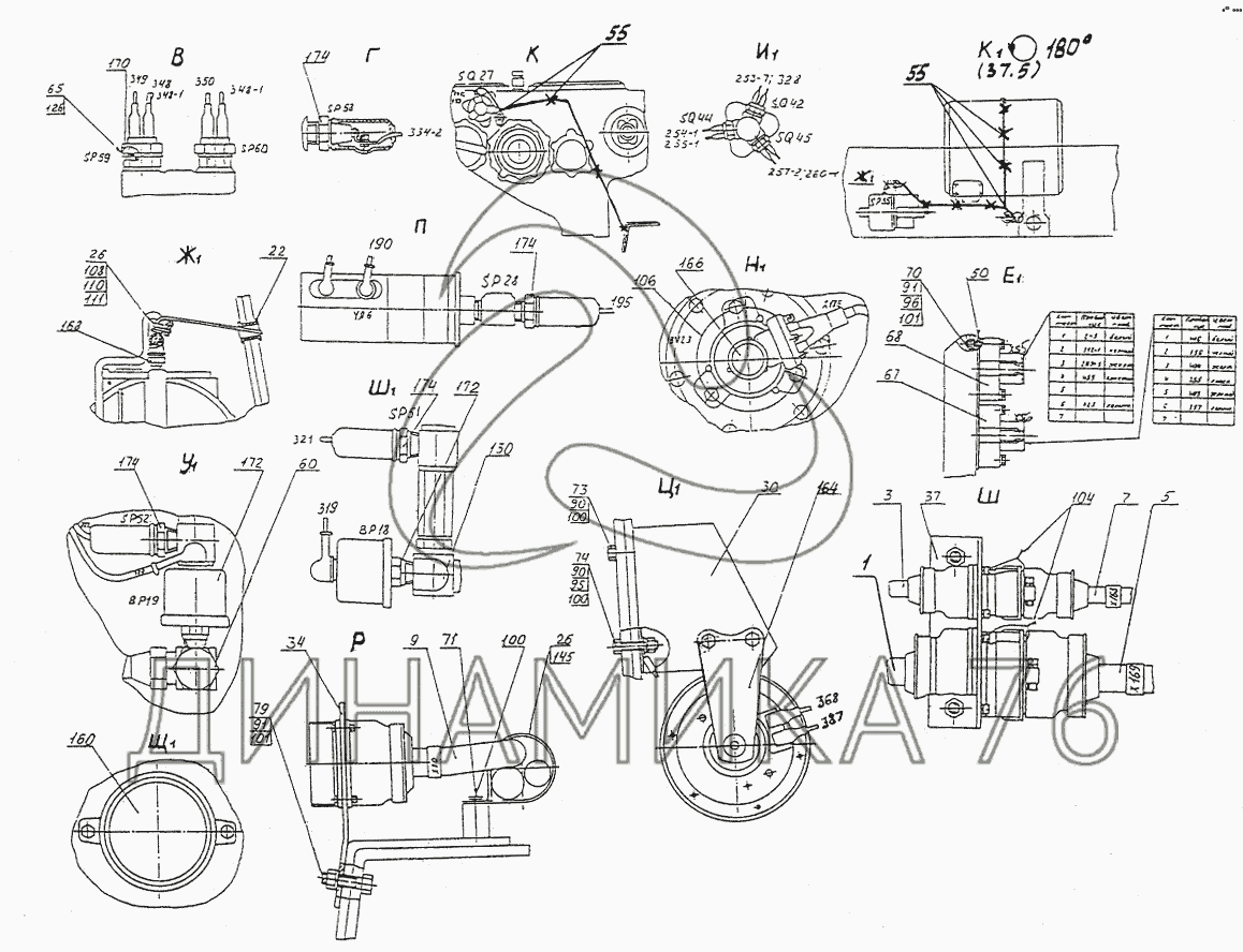 Схемы запчастей предназначены для справочных целей! Мы продаем не все запчасти от Установка электрооборудования на шасси на МЗКТ-74131, представленные в этом списке.
