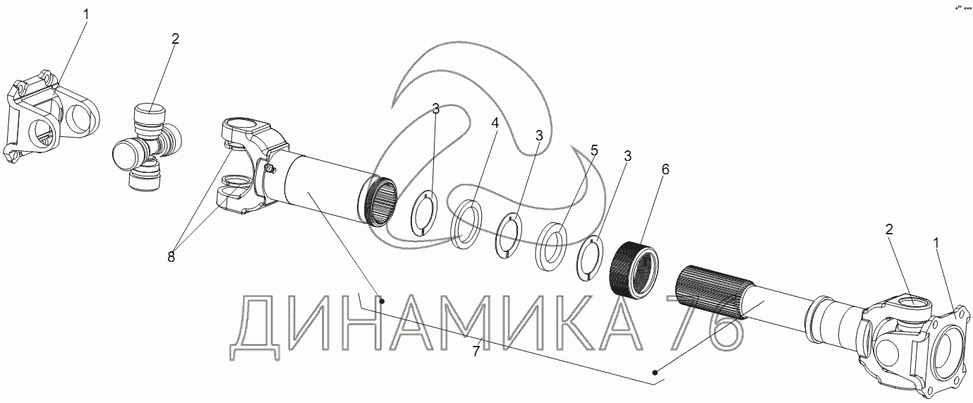 Схемы запчастей предназначены для справочных целей! Мы продаем не все запчасти от Вал карданный на МЗКТ-74131, представленные в этом списке.
